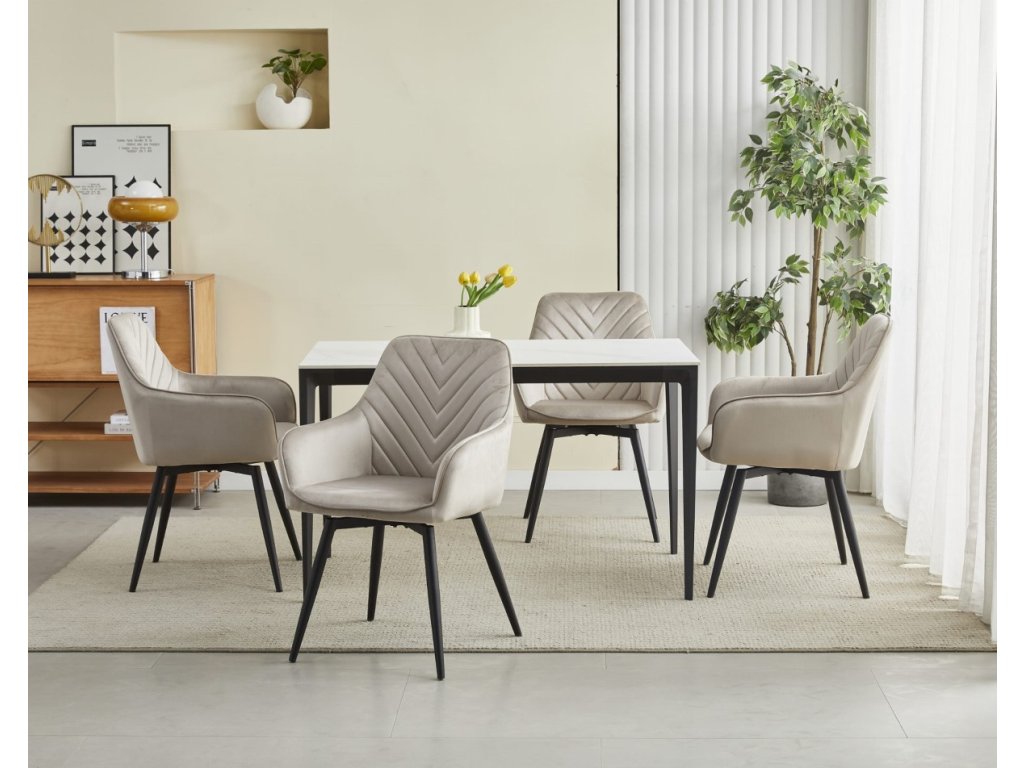 Bársony étkezőszékek elegáns és kényelmes megoldást nyújtanak minden étkezőbe vagy konyhai sarokba. A bársony puha felülete luxusérzetet kelt látásra és tapintásra is, míg a puha párnázás és ergonómikus forma kényelmet biztosít hosszabb idejű üléseknél is. Ez a szék nem csupán egy praktikus bútor, hanem egy kiemelkedő dizájnelem is, mely már első pillantásra megragadja a figyelmet. Remekül illik a mindennapi étkezésekhez és alkalmi vendégségekhez is.