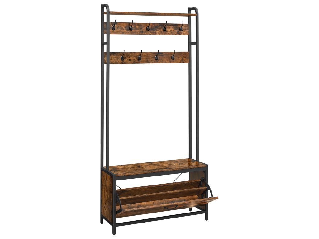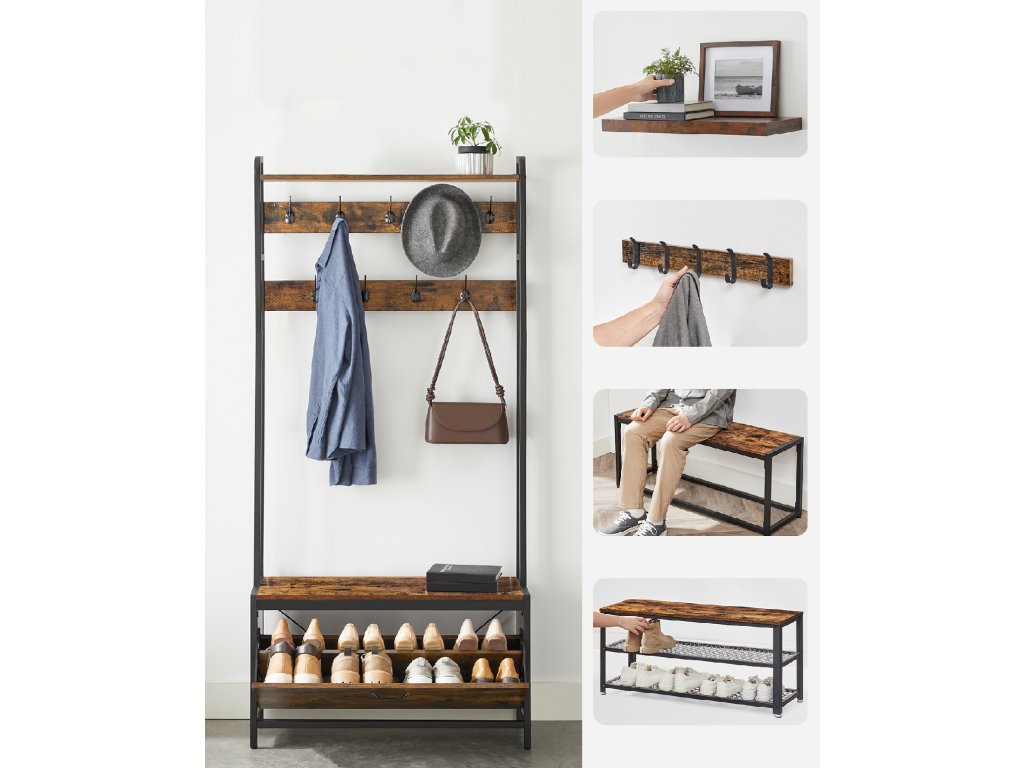 - Három az egyben: kampók, pad, cipősszekrény és tároló polc