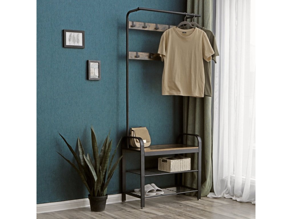 Ez a keskeny fogas paddal ideális megoldás kisebb előszobákba vagy folyosókra. Praktikus kombinációt kínál az akasztók, tároló polcok és ülőhely között, anélkül, hogy sok helyet foglalna el. A csúsztatható akasztók lehetővé teszik az elrendezés igény szerinti testreszabását, a pad pedig kényelmet nyújt cipőfelvételkor. Az ipari stílusú kialakítással, fém szerkezettel és fa részletekkel ízléses kiegészítője lesz a belső térnek, amely funkcionalitásával is lenyűgöz.