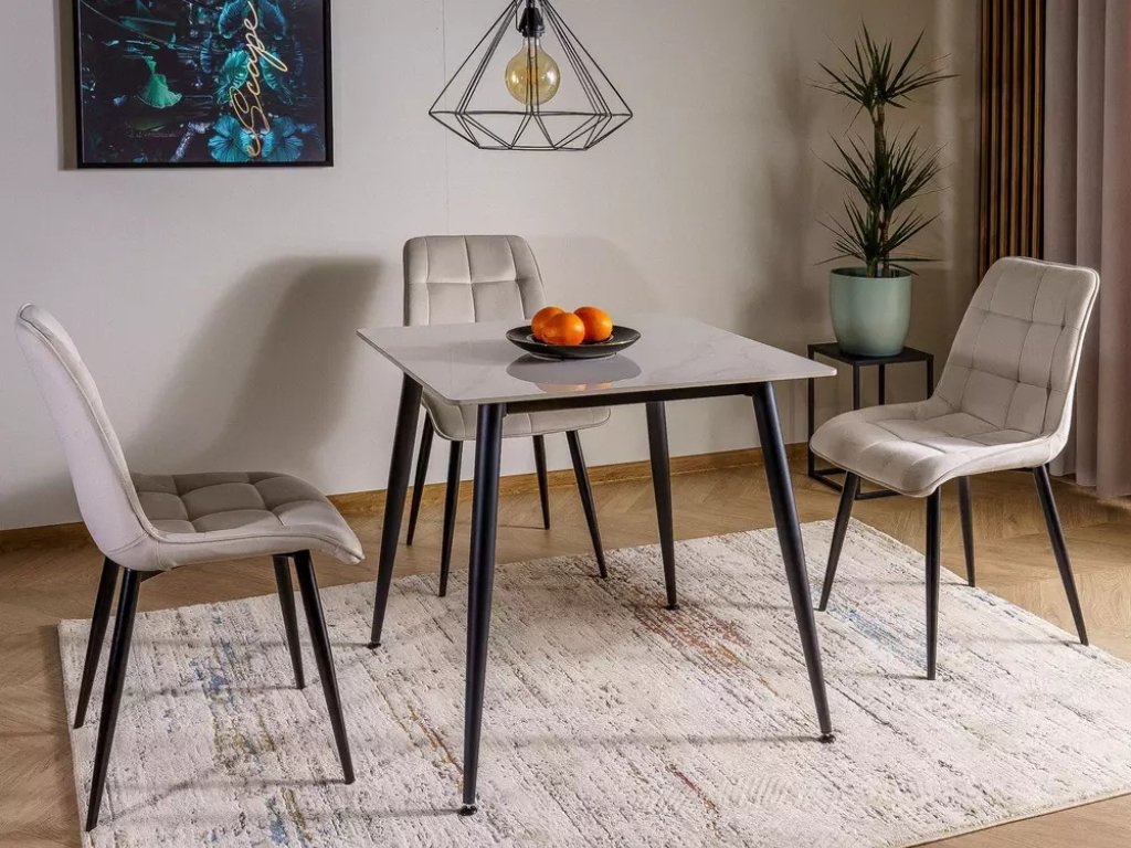 Étkezőasztal RION 80x80 cm kerámia asztallappal, fehér márvány