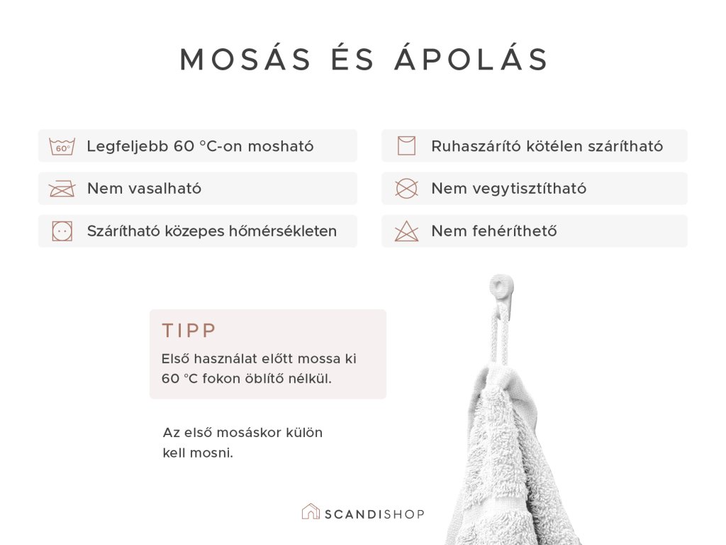 - A törölköző ajánlott mosási hőmérséklete 60°C