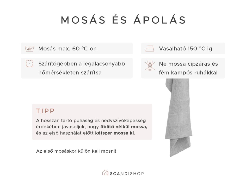 - Mosás max. 60 °C-on, vasalás 150 °C-ig