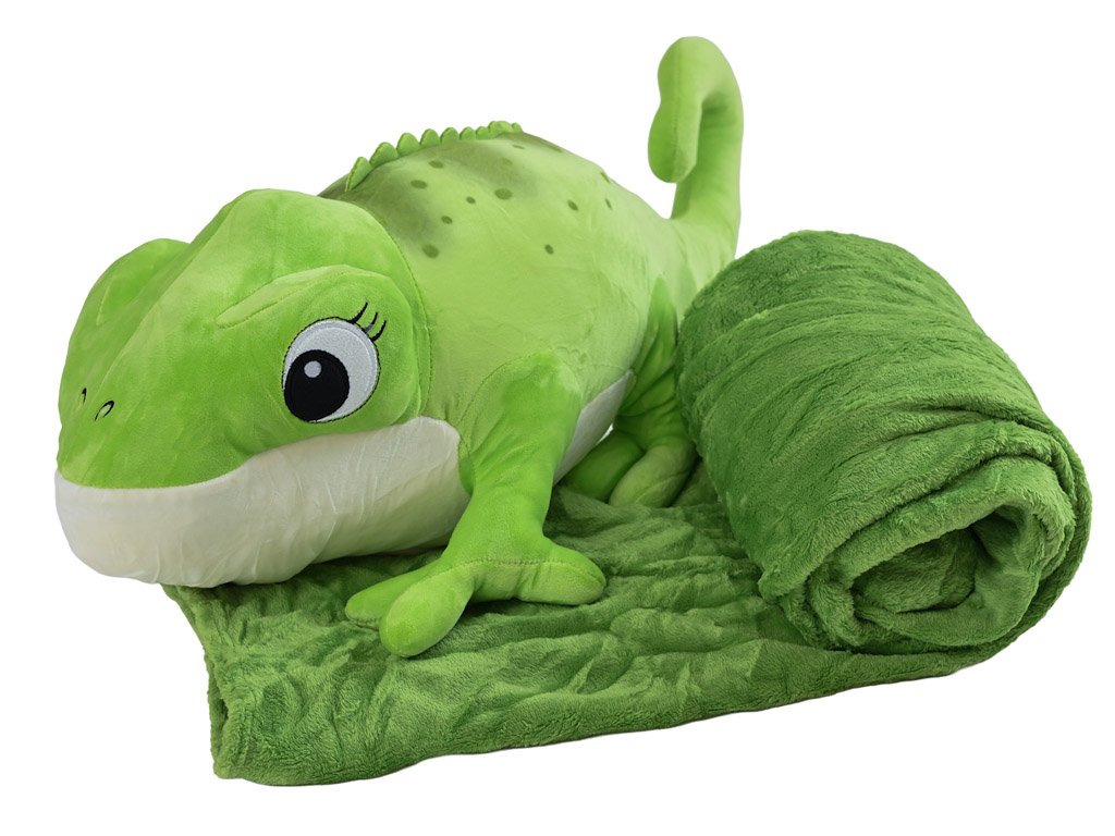 Plüss KAMÉLEON zöld babatakaróval belül