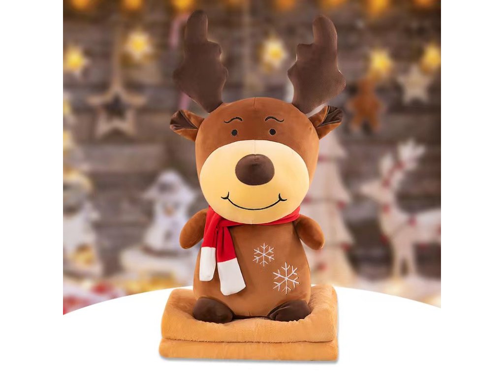 Plüss RÉNSZARVAS gyerek takaróval, barna