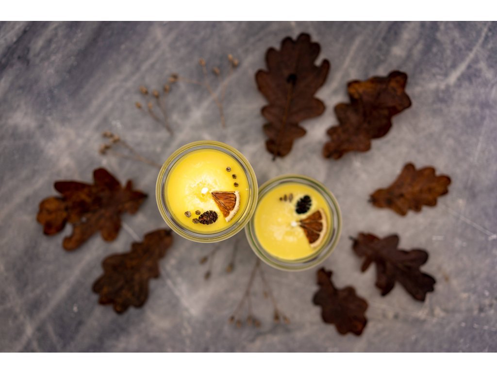 Kézzel öntött szójaviasz gyertya BERGAMOT, NARANČ & PACSULI 160 ml