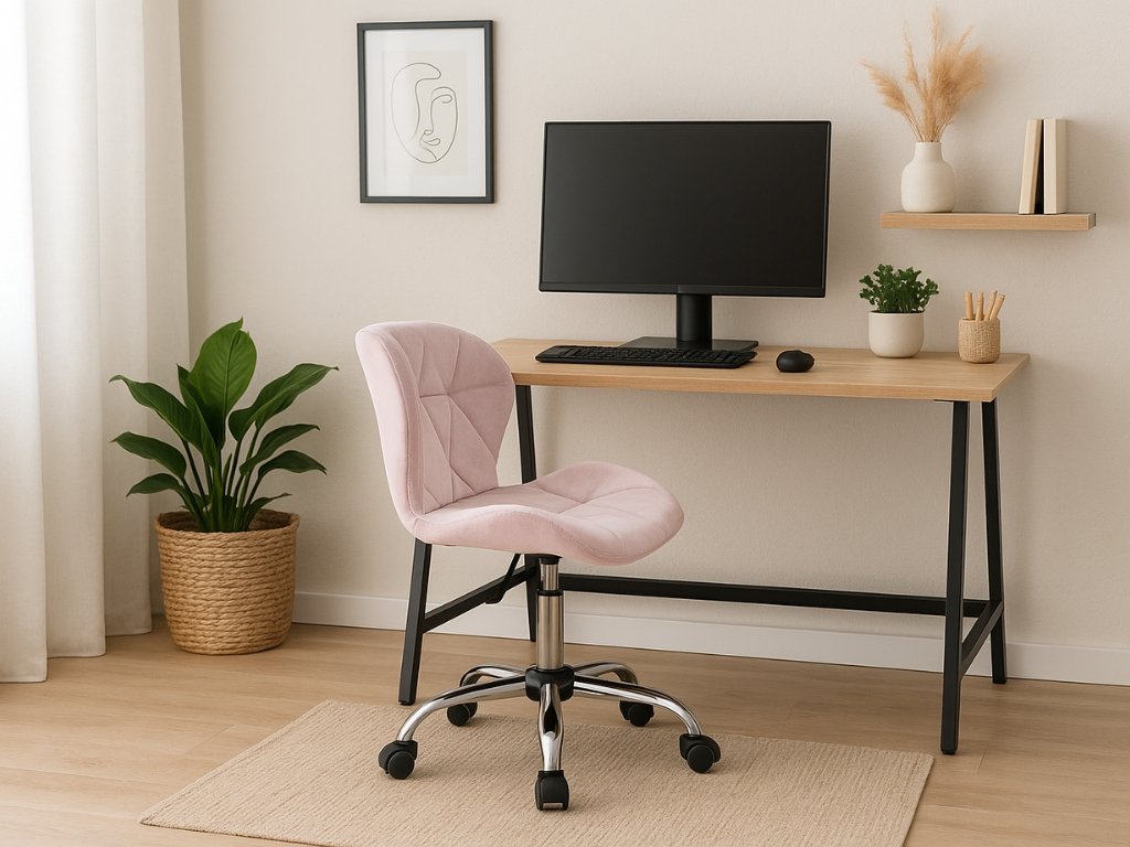 Dolgozószobai szett íróasztal TAYLOR SONOMA 100x50 cm + irodai szék AVOLA VELVET púderrózsaszín