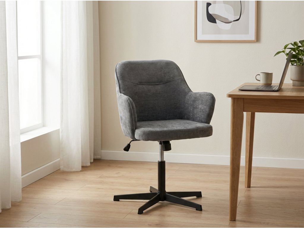 Ez az irodai szék kiválóan kiegészíti a munkaterületet, és nemcsak funkcionális, hanem stílusos megjelenést is hoz. A kényelmes kárpitozásnak és a stabil szerkezetnek köszönhetően megbízható társ lesz a mindennapi feladatok során. Az elegáns design pedig szépen illeszkedik a modern otthon vagy iroda enteriőrjébe, és hozzájárul a kellemes légkör megteremtéséhez, amelyben jobban tud koncentrálni és pihenni.