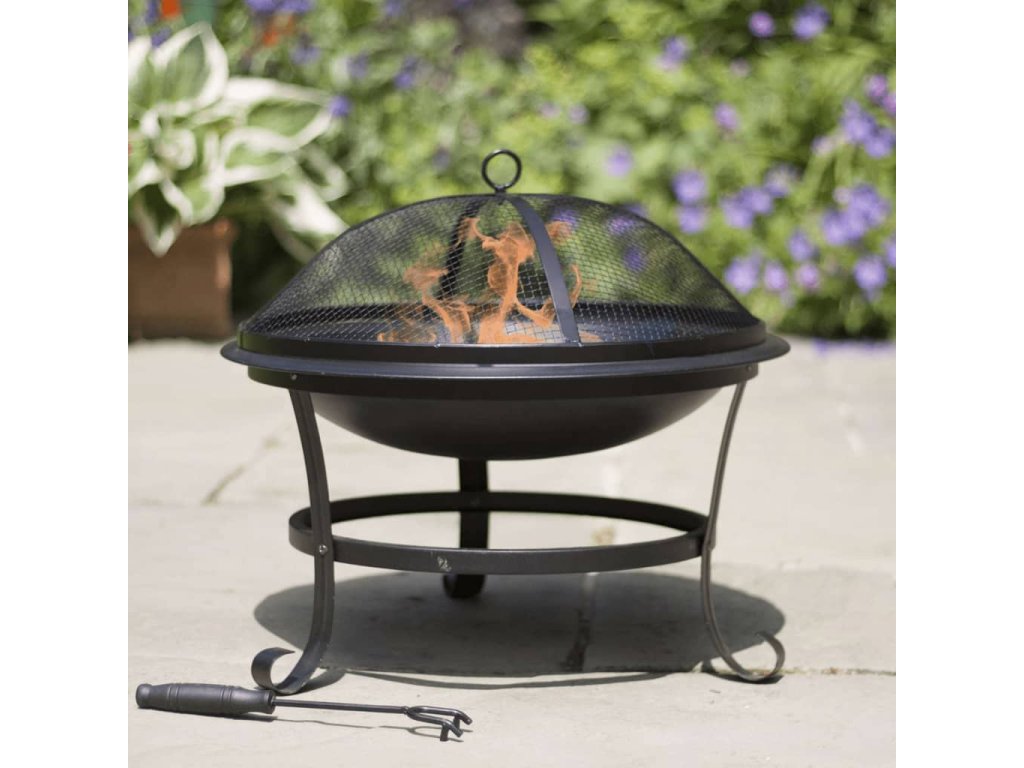 A csomag tartalma egy tűztál, egy piszkavas és egy tűzfedő.