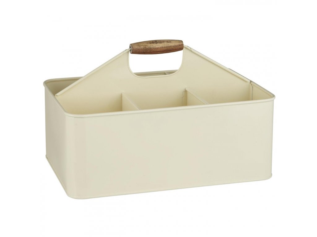 Krém színű rendszerező 6 rekesszel és fa fogantyúval METALO