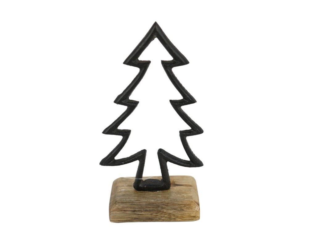 Karácsonyi dekoráció CHRISTMAS TREE mangófából 17 cm, fekete