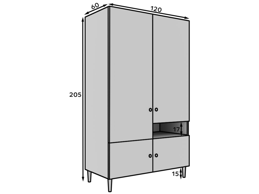 A Ruhásszekrény DULLUM 120x205cm, fehér ideális megoldás mindazok számára, akik modern és funkcionális bútort keresnek elegendő tárolóhellyel. Kialakítása lehetővé teszi, hogy könnyedén rendszerezze ruháit, kiegészítőit vagy más tárgyait, miközben tiszta, minimalista külsőt biztosít, amely felélénkíti az enteriőrjét. Kiváló minőségű anyagokkal és időtálló formatervezéssel ez a szekrény praktikus és esztétikus elemmé válik otthonában, amely minden igényt kielégít.