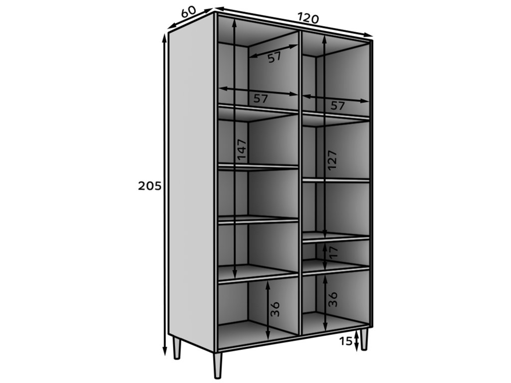 - Két magas szekrény, két kis szekrény az alsó részen és egy nyitott polc