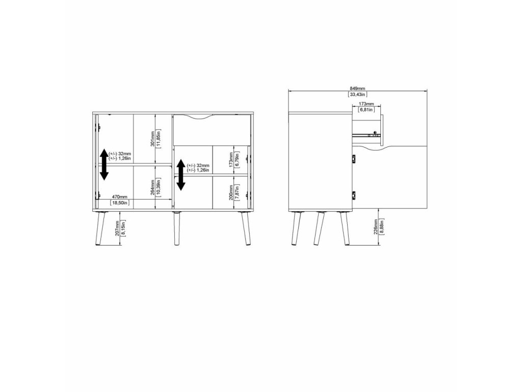 Akció Fehér komód OSLO 75387 1 fiókkal II. osztályú