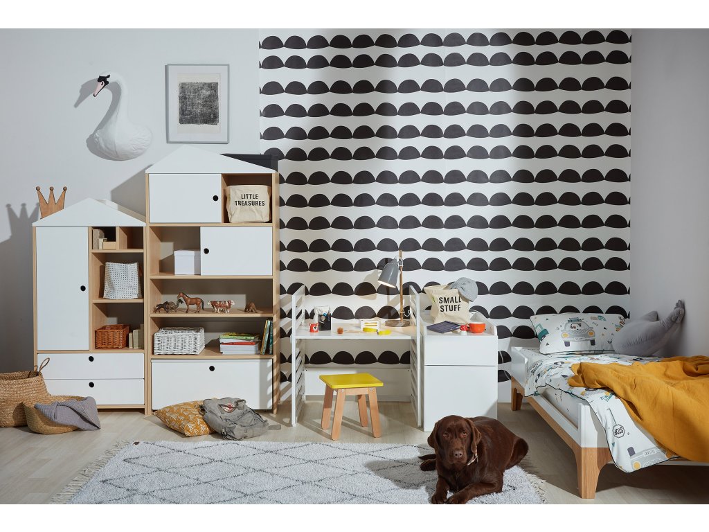 A gyerekszoba berendezése skandináv stílusban a letisztultságra, funkcionalitásra és természetes elemekre összpontosít. Használjon semleges színeket, mint a fehér vagy szürke a falakon és a fő bútorokon, kiegészítve finom pasztell akcentusokkal. A fa elemek meleg és otthonos hangulatot adnak. A bútoroknak tiszta vonalúaknak és praktikusaknak kell lenniük, például tárolókkal ellátott ágyakkal. Használja ki a tároló dobozokat és polcokat a játékok rendezésére. Egészítse ki a teret természetes anyagokkal, mint például pamut és len, és törekedjen a természetes fény maximális kihasználására egyszerű világítótestekkel.