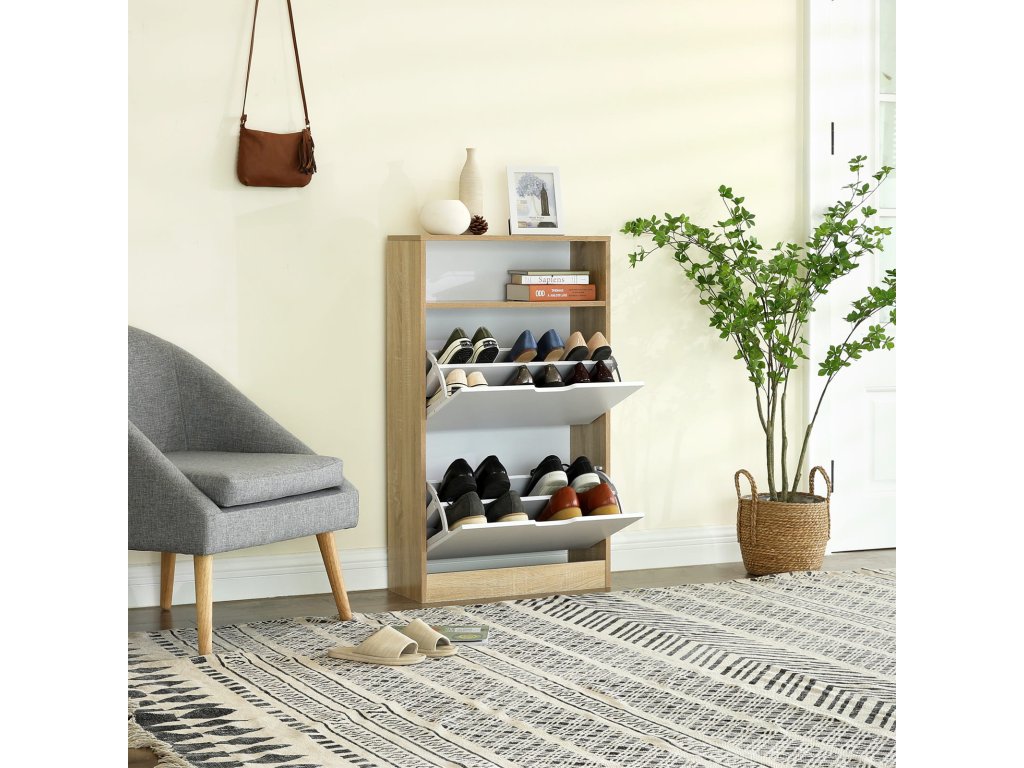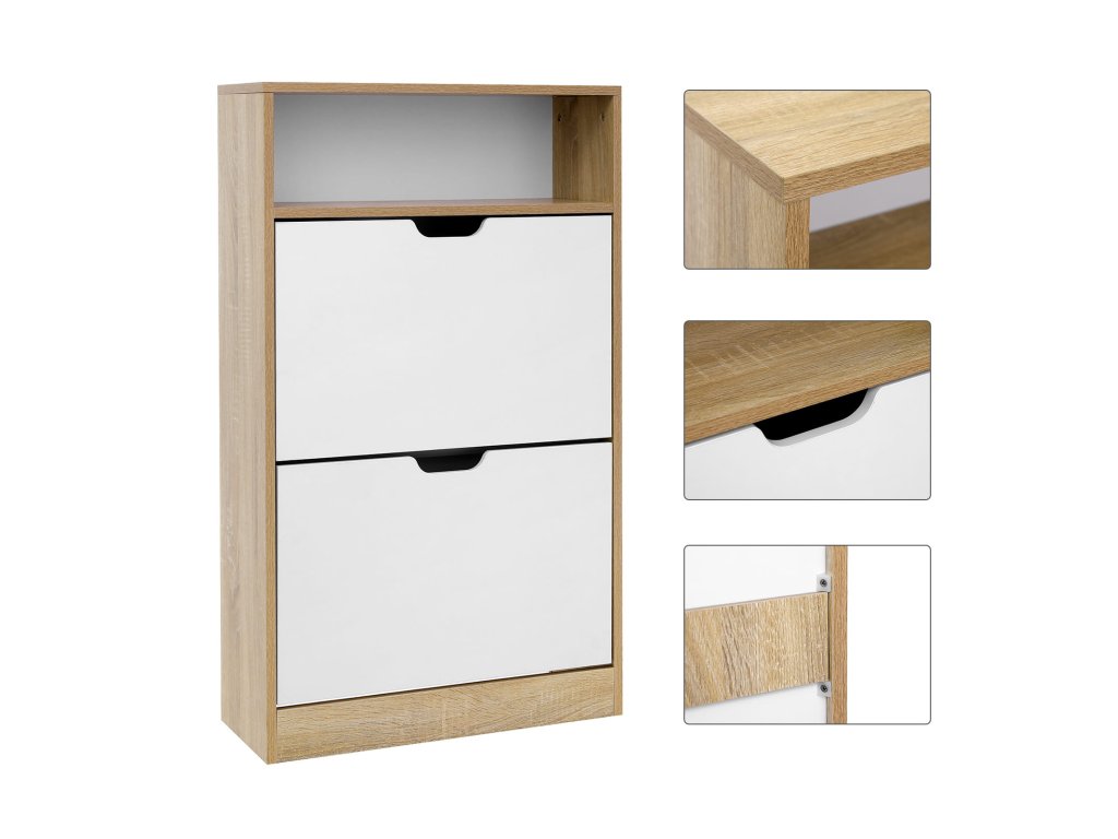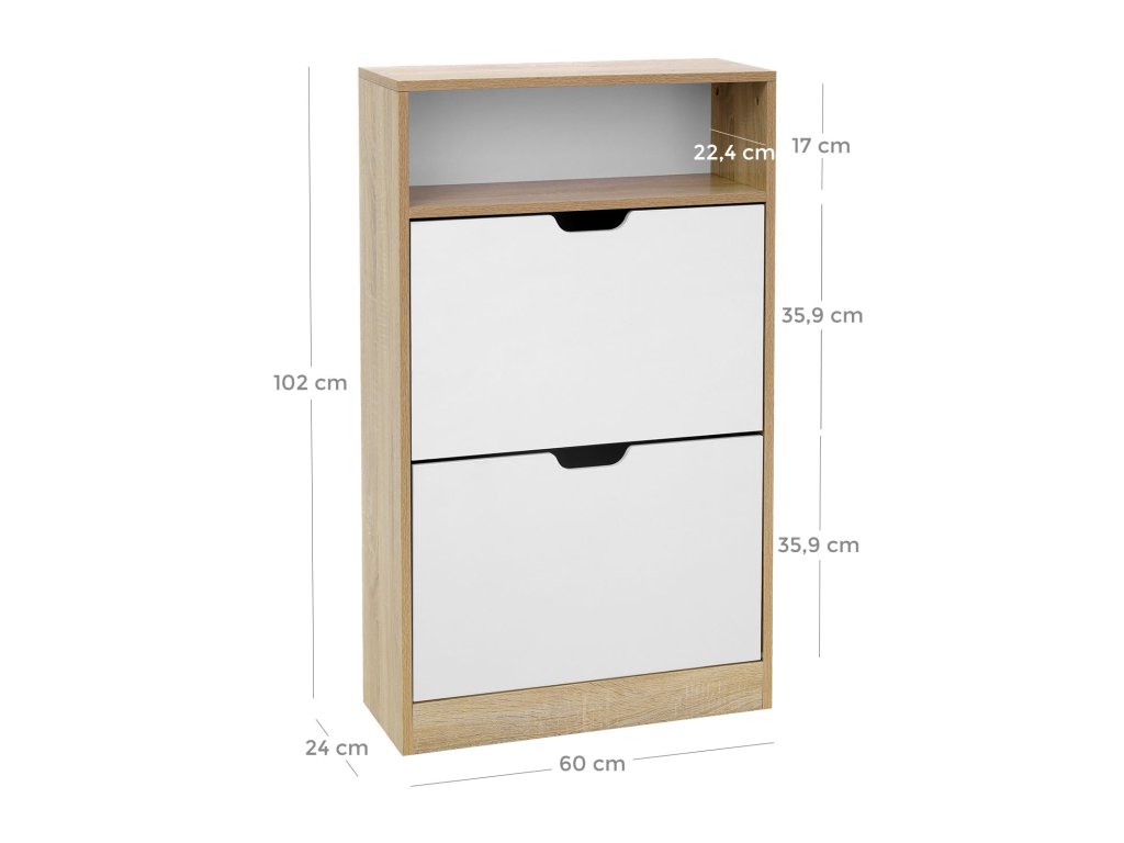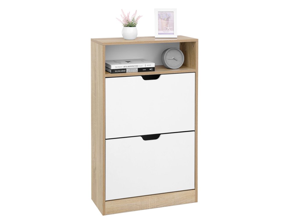 AKCIÓ Felnyíló cipősszekrény BOCO tölgy dekoráció és fehér, 2 Polc II. osztályú