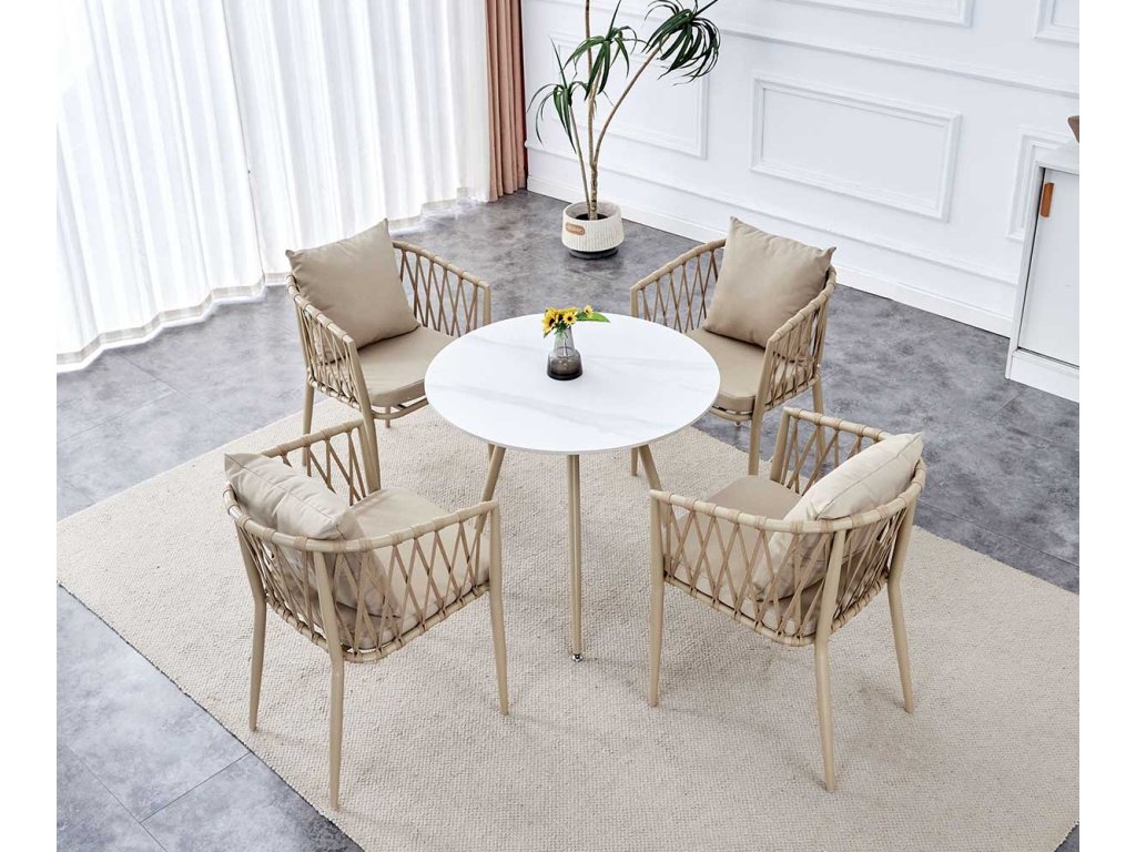 A hűvös skandináv természet árnyalatai harmonikus hatást keltenek. A semleges színpalettát kiegészítve természetes anyagokkal és egy markánsabb tónussal energiát sugároz az egész enteriőrbe. A magas funkcionalitás jellemző a skandináv minimalizmusra. A helyiségek könnyedek, tiszták és otthonosak. Tisztaságot érhet el multifunkcionális bútorokkal és elegendő tárolóhellyel. Ugyanez érvényes a skandináv étkezők és konyhák esetében is. Nagy nyitott tereket töltsön meg Kerek étkezőasztal bézs lábakkal MELODY 70x70, fehér asztallal. Kárpitozott székek és bőr, kötött vagy üveg kiegészítők ízléses elemeket fognak adni.
