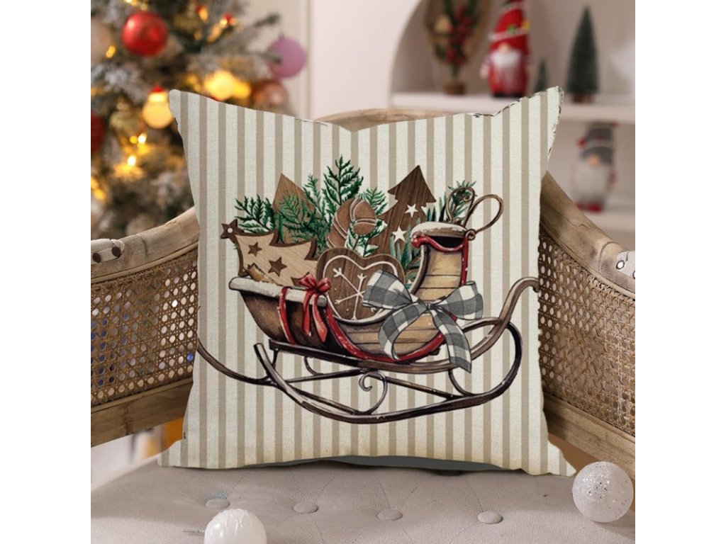 Karácsonyi párnahuzat SLEIGH 45x45 cm, bézs
