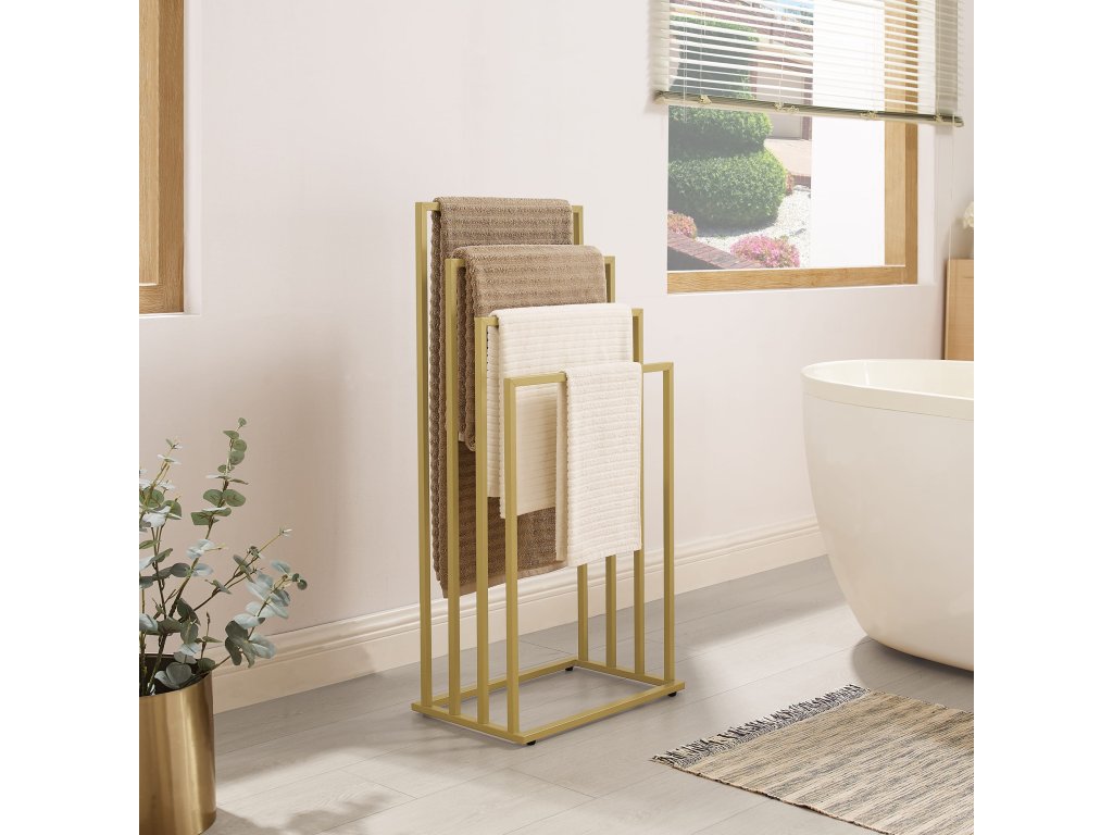 Törölközőtartó LINESTRO fém, 4 karos, 93x45cm, aranyszínű