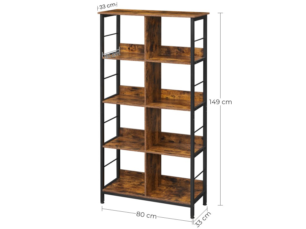 Könyvespolc TAYLOR 5 polc 149x80 cm, rusztikus barna