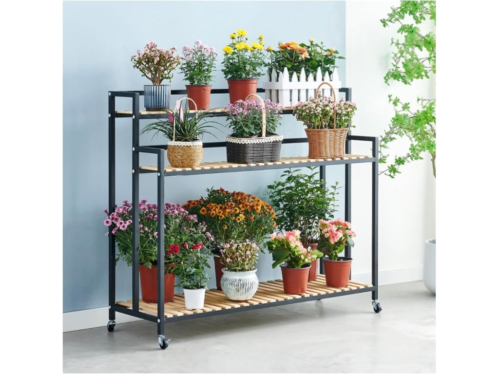 Virágtartó állvány 3 polccal FLOREXA 100x40x102 cm, fekete