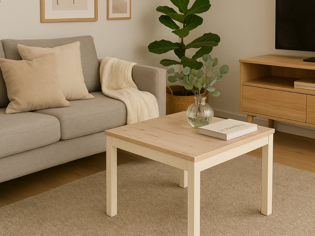 Dohányzóasztal FROST 60x60 cm, krémszínű / alpesi tölgy