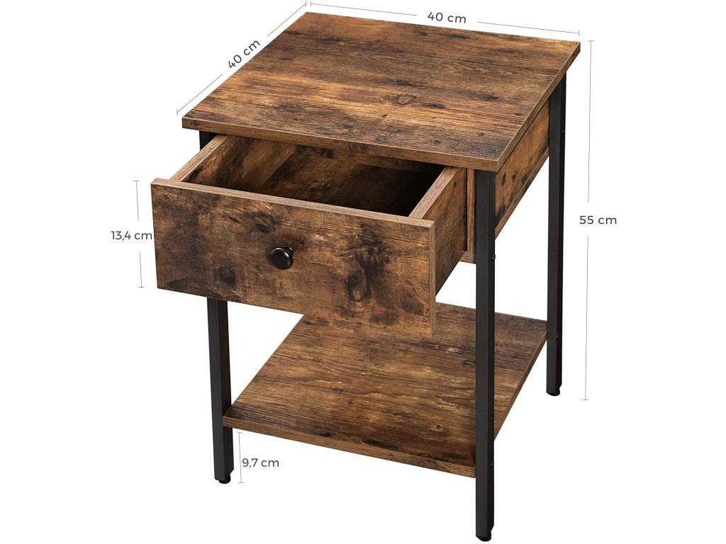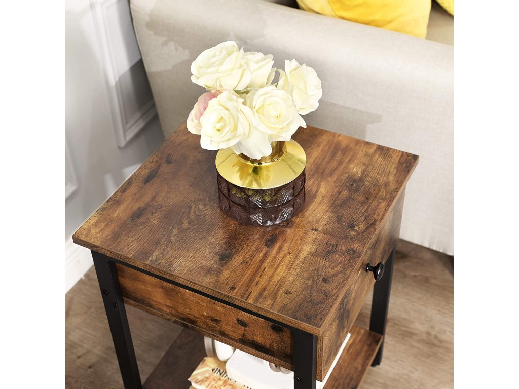 Tároló asztal fiókkal TAYLOR 40x40 cm, rusztikus barna