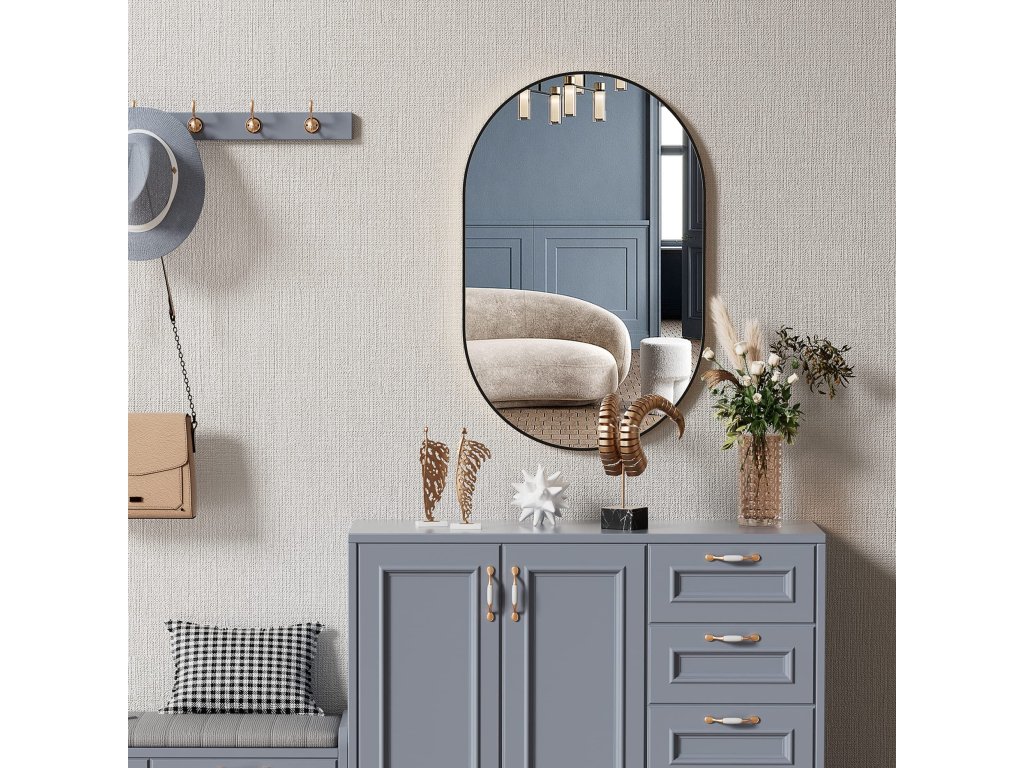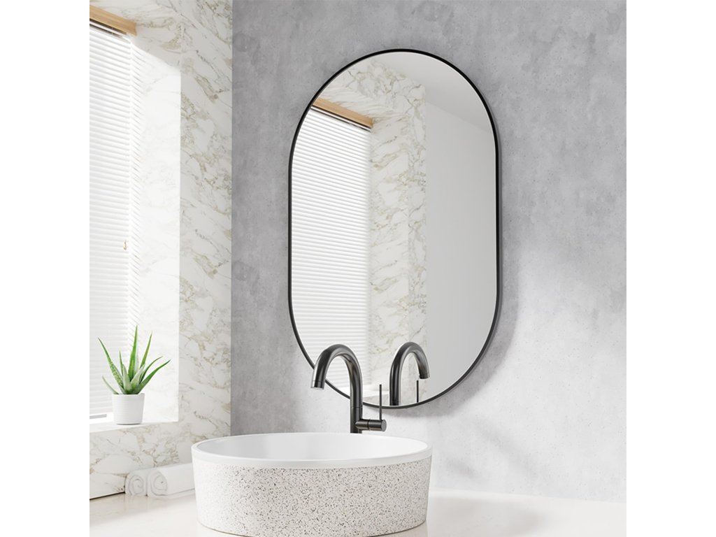 Ovális fali tükör OLVANI 80x40 cm fekete kerettel