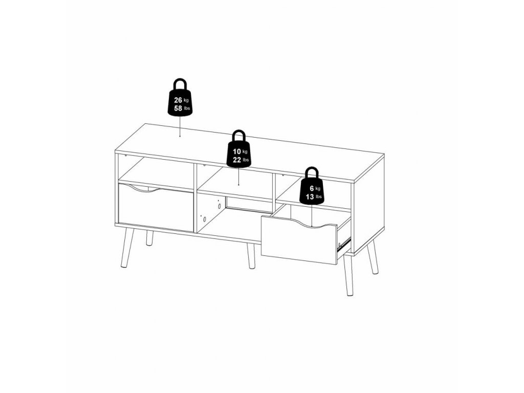 Fehér TV asztal OSLO 75391, tölgy sonoma