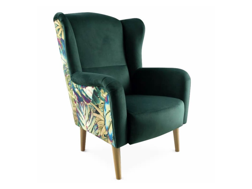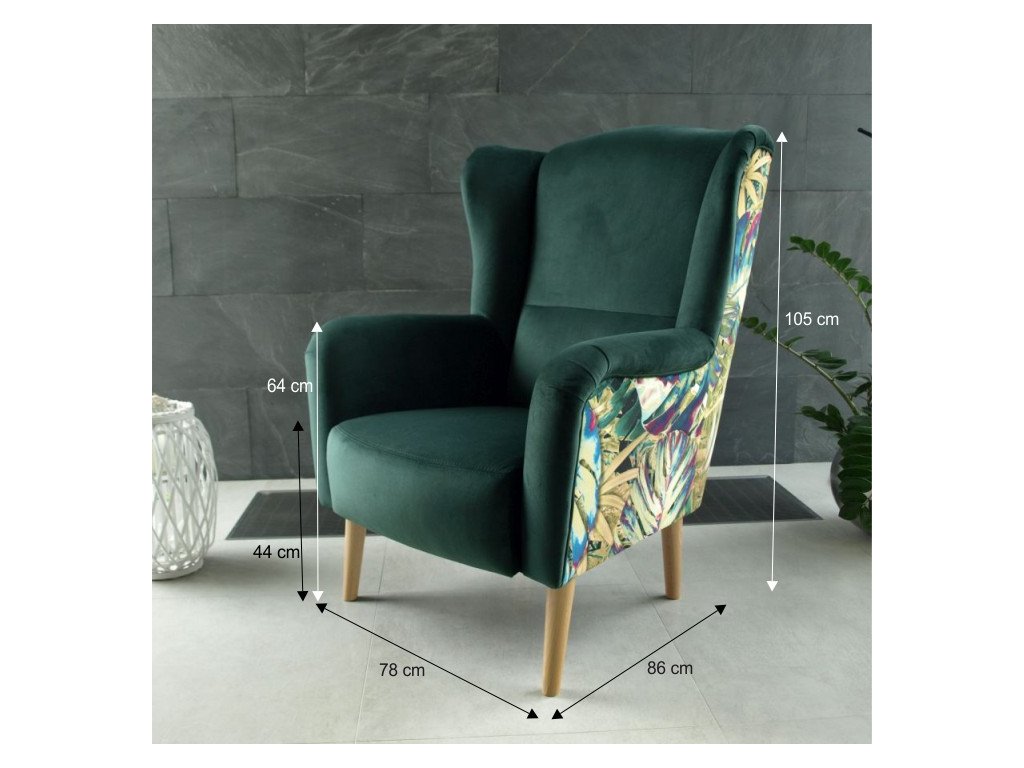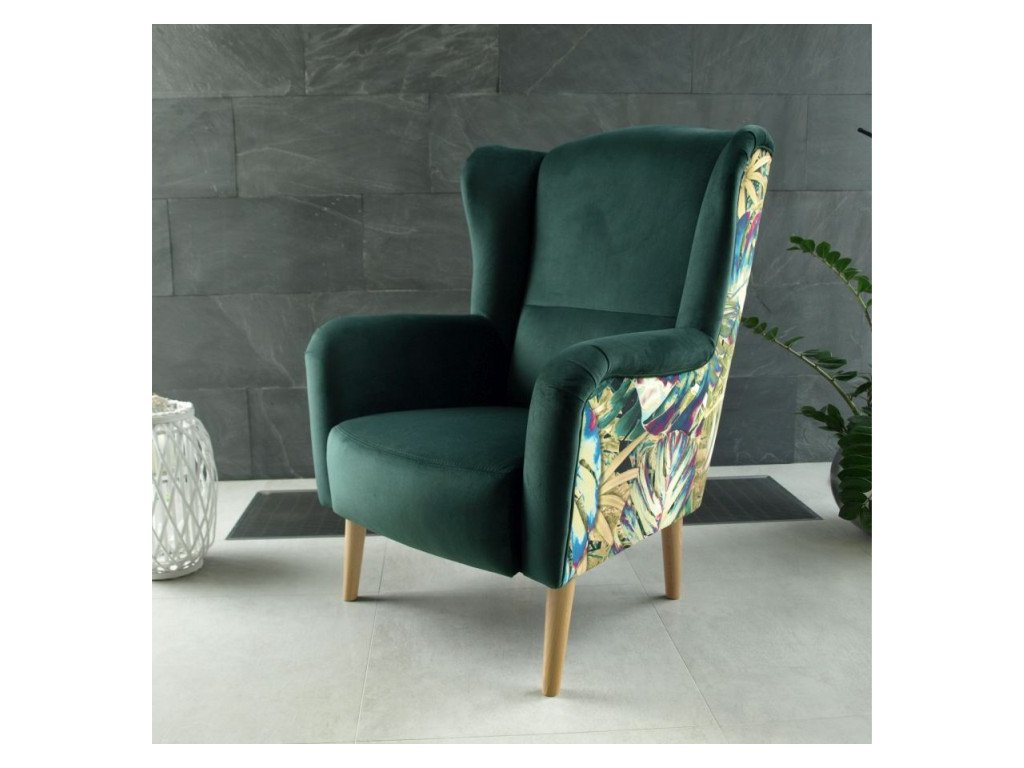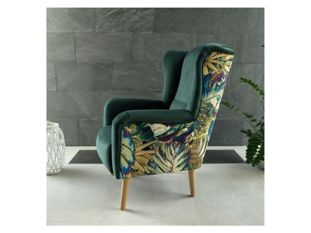 Design karosszék, smaragd szövet / dzsungel mintás, BELEK