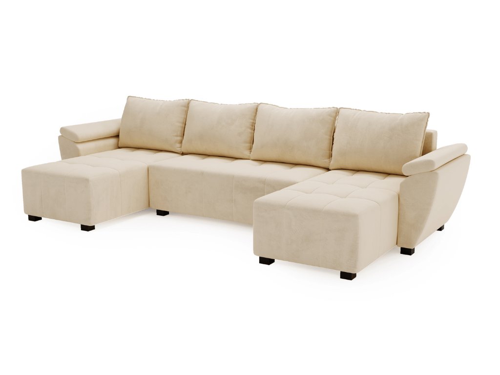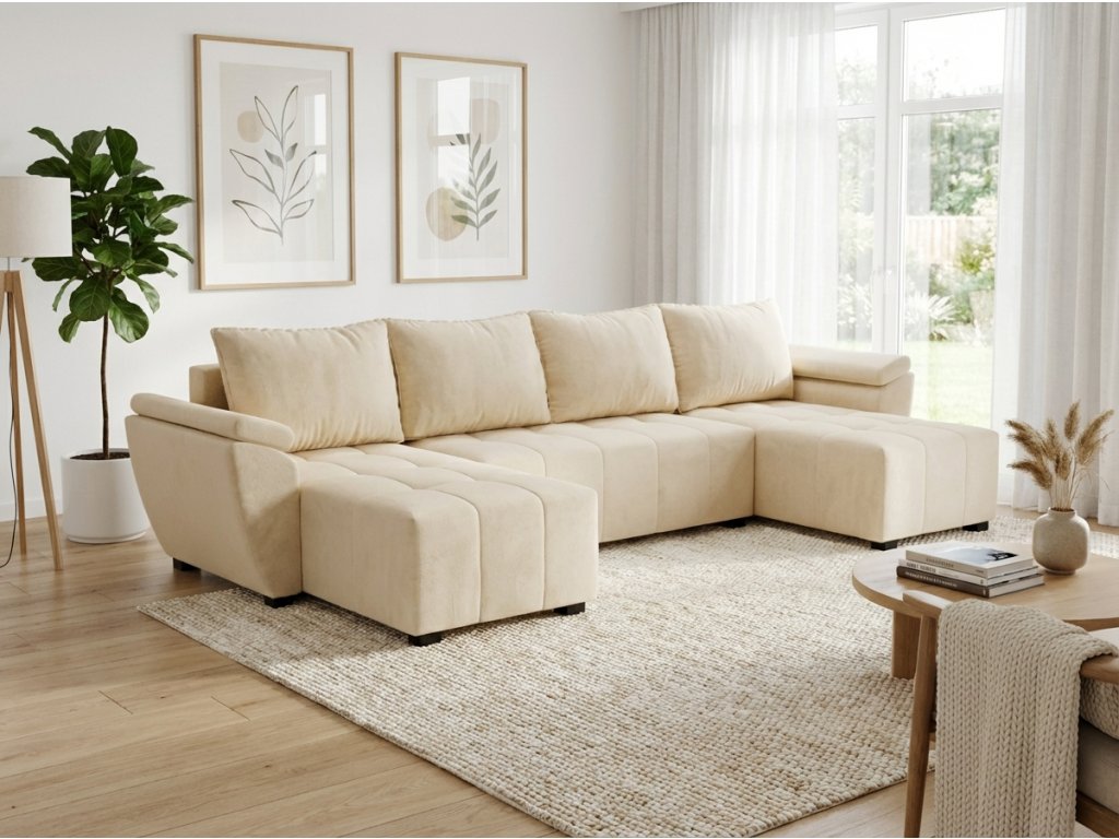 Kinyitható U alakú ülőgarnitúra LIVARO 305x140 cm, krémszínű